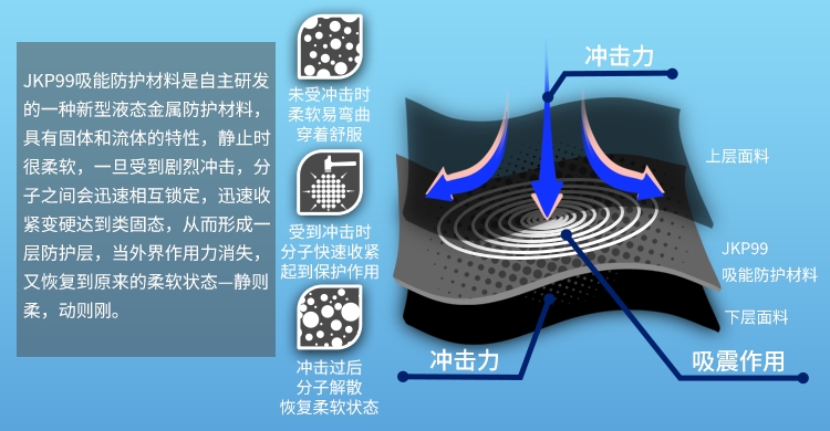 JKP99柔性仿生吸能防護材料運用廣泛,目前應用于公司康復理療、運動防護等系列產品上。